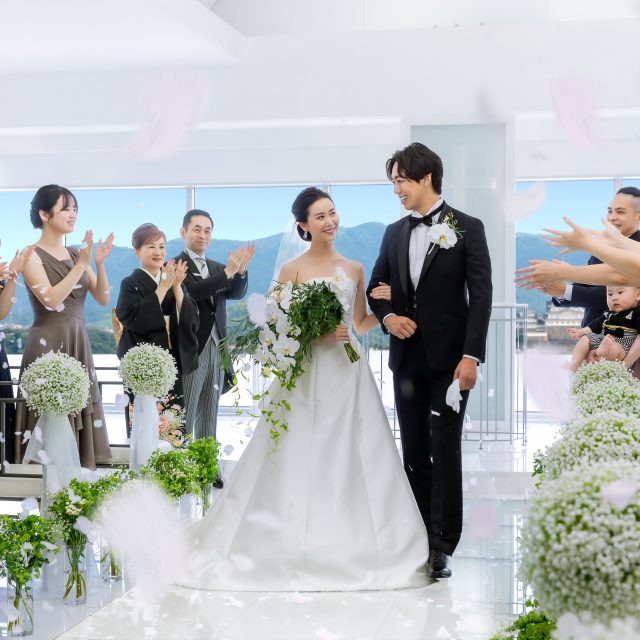 世界遺産姫路城が一望できるスカイチャペルで結婚式。二人の未来を誓う場所に