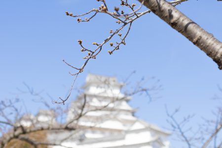 昨日、高知と岐阜で桜の開花宣言がありましたが、姫路城の桜はまだまだ固いつぼみです。